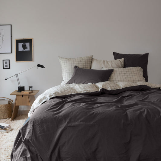 Washed linen and cotton duvet cover Songe charcoal tiles
