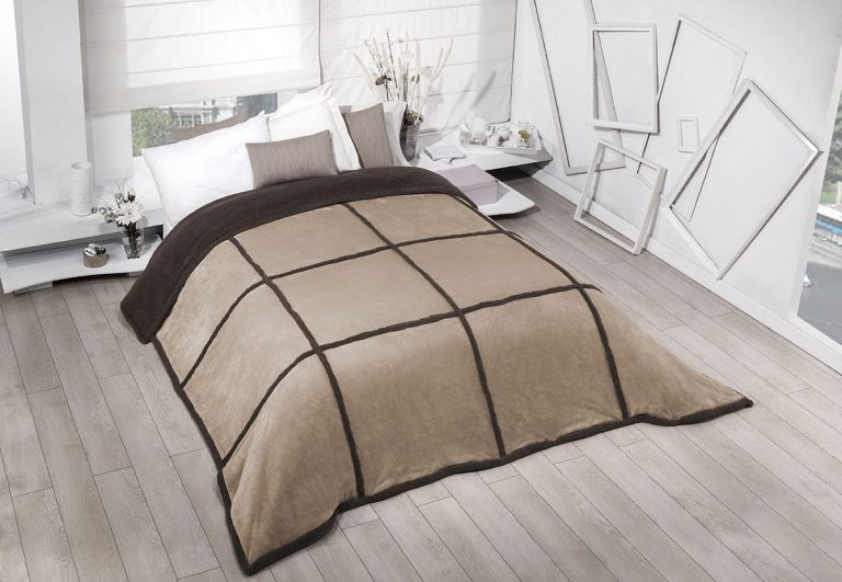 Designed with embossed squares, it’s made of sherpa on the front as well as on the back.